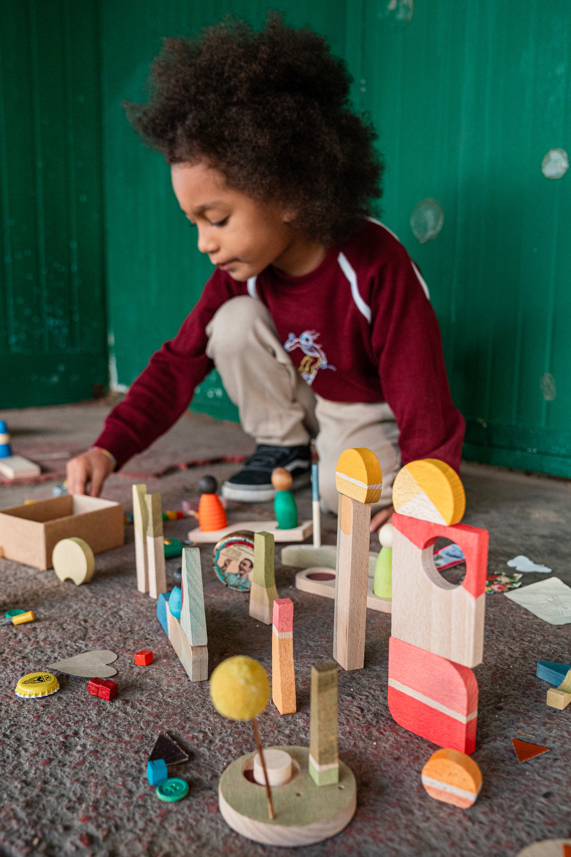 Let children build cities and towns and villages or other creative visions from their imagination with the ‘Happy Place’ Grapat set of loose parts.