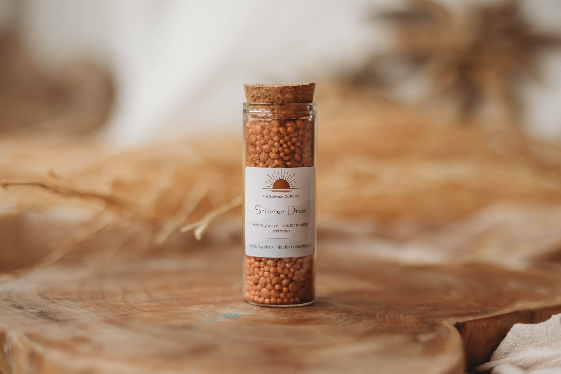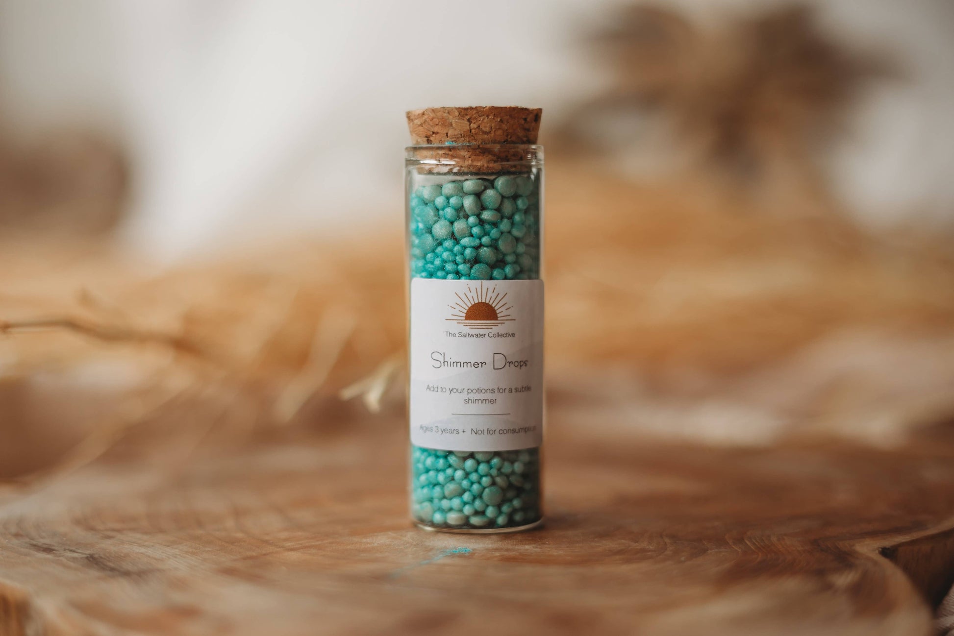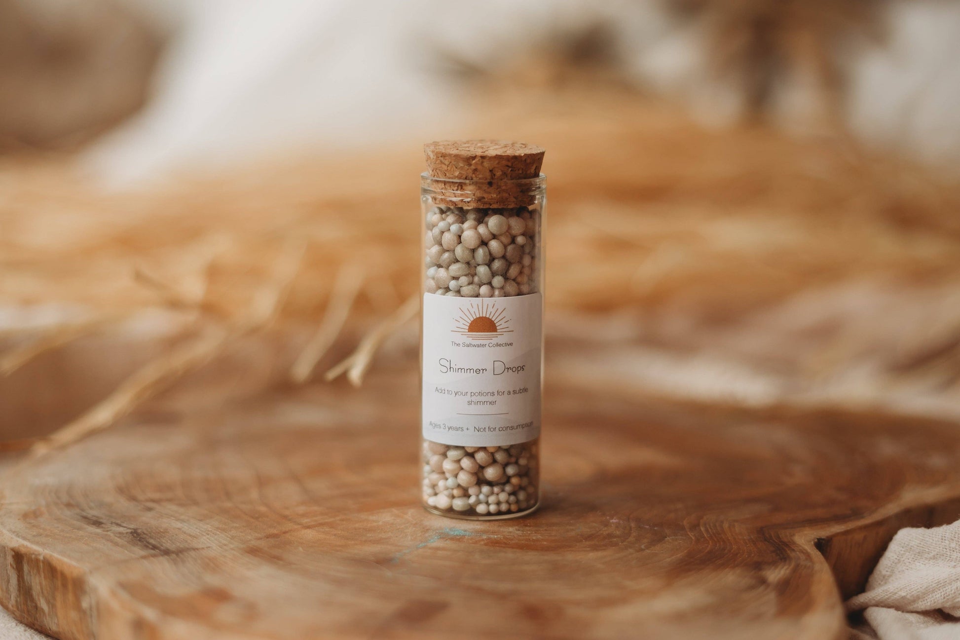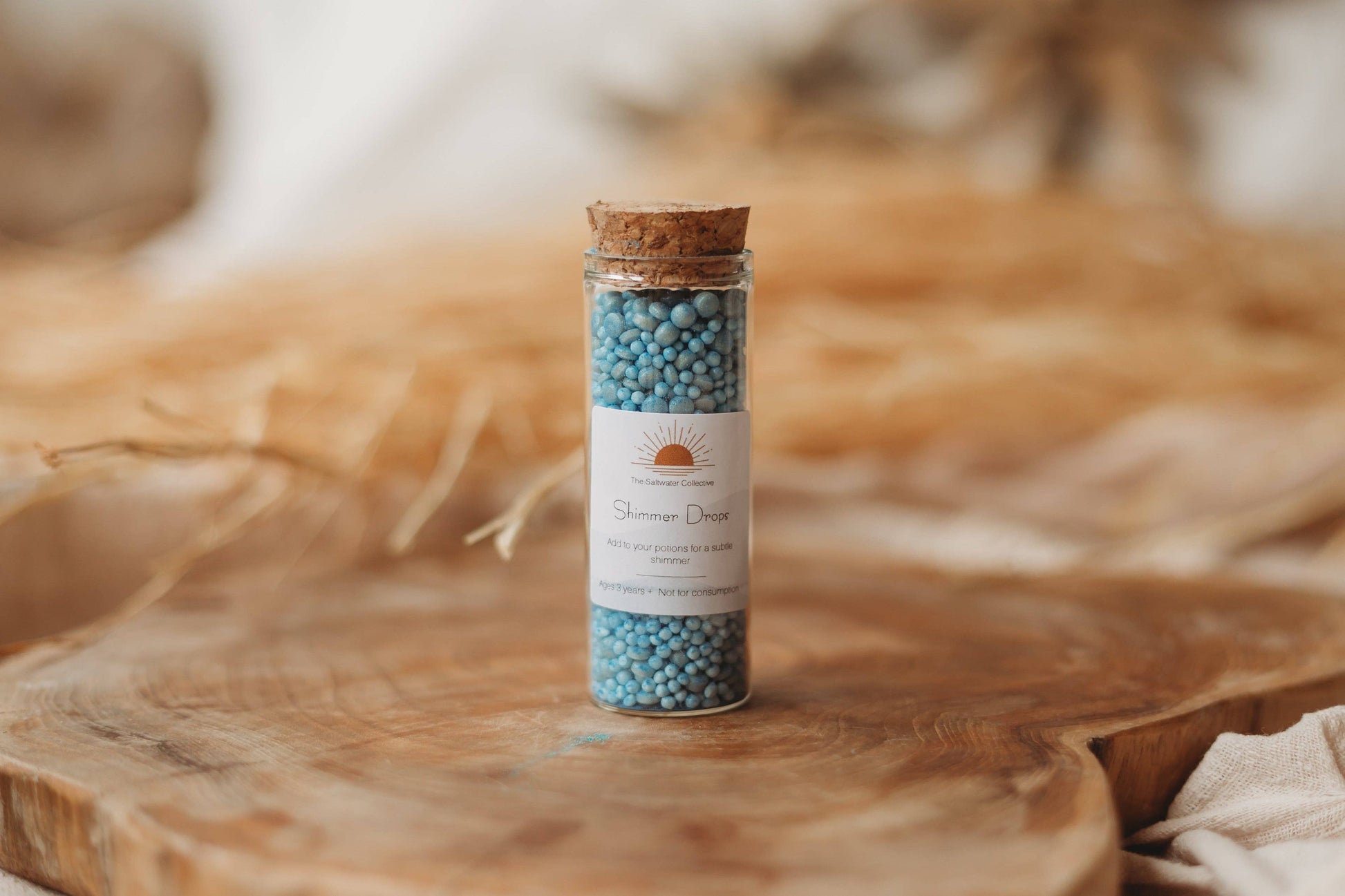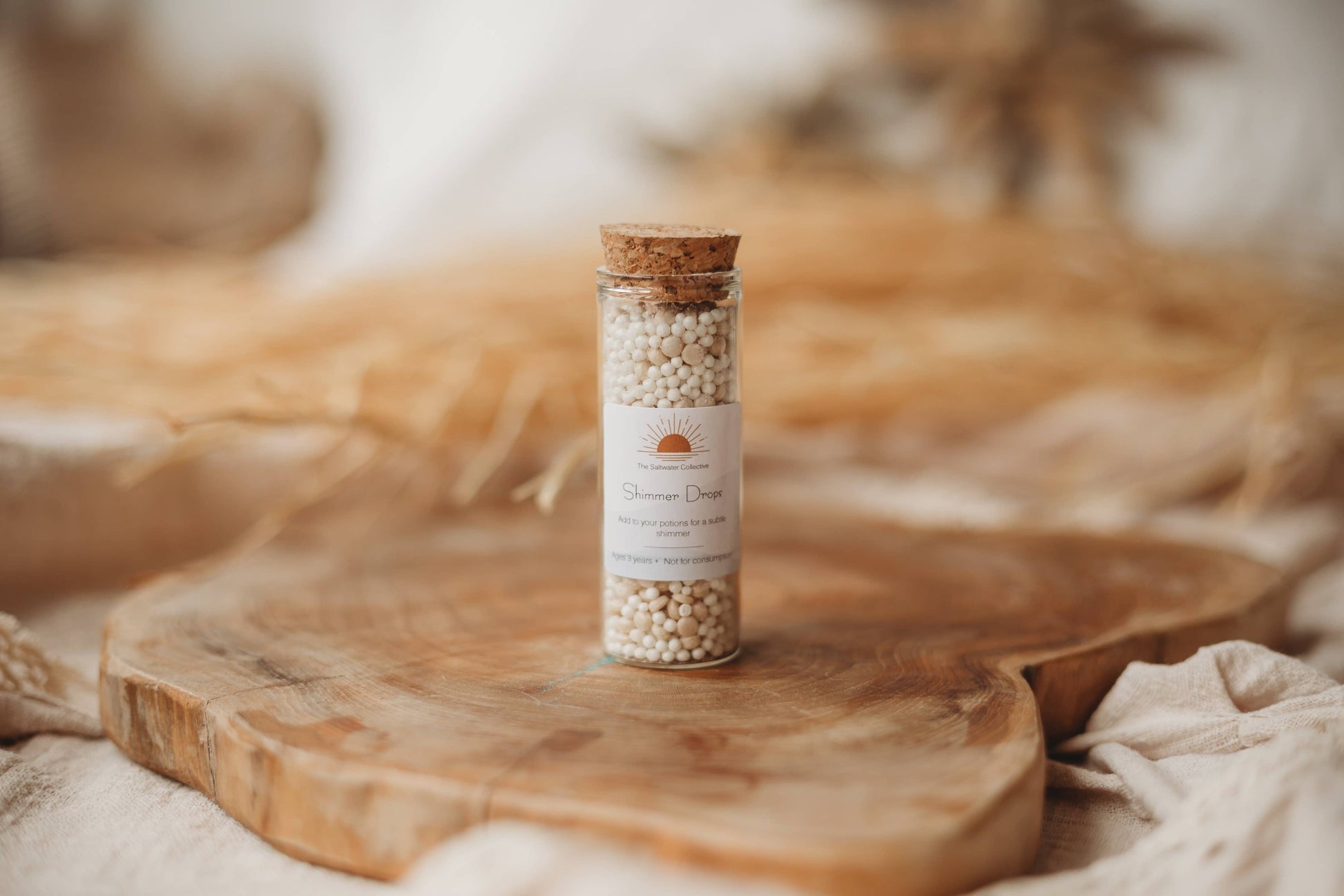 Comes in a reusable 40ml glass Jar which you can reuse as a water tool in your sensory play or a potion play vile! (please note, shimmer drops now come in a jar with a screw on lid, not a cork as pictured)