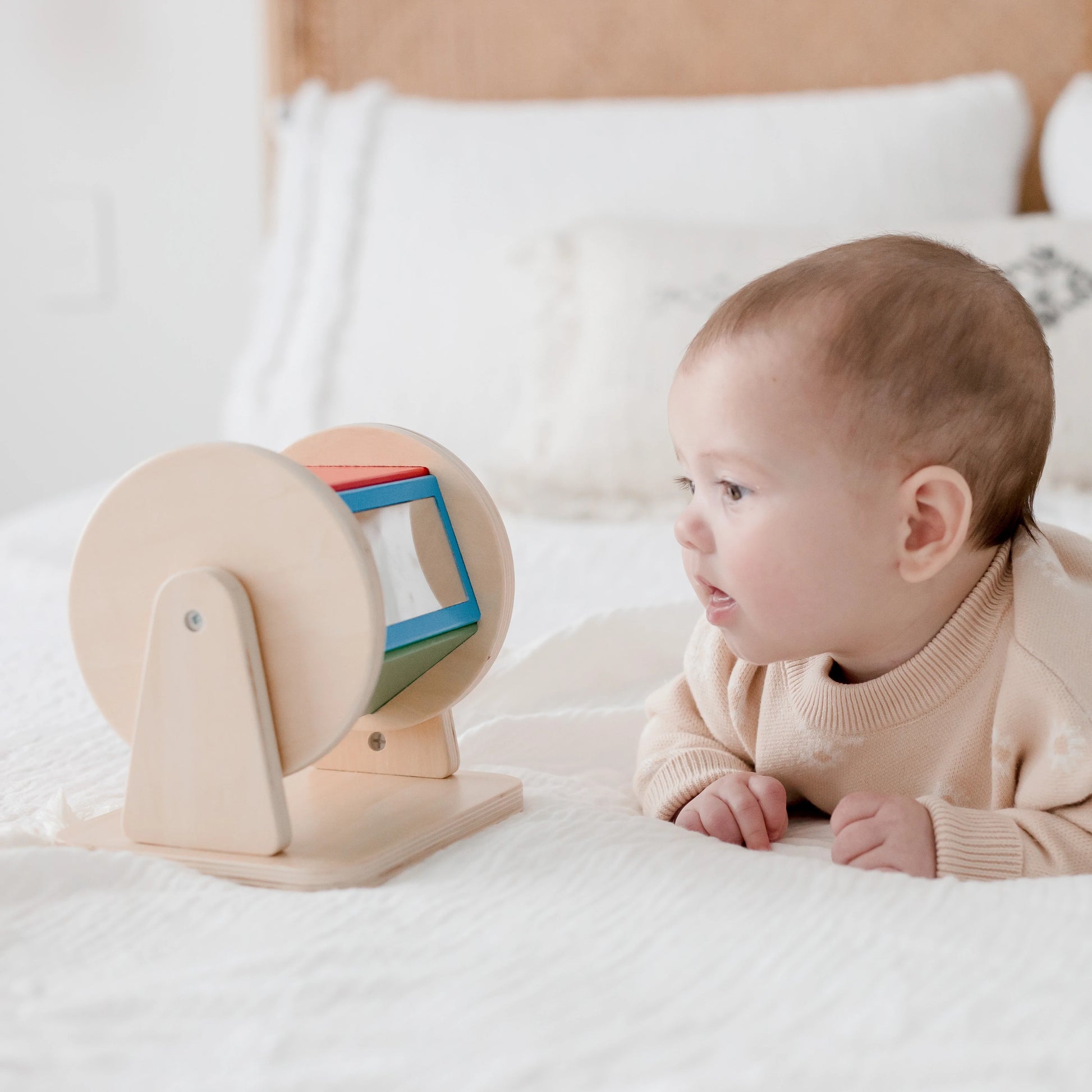 The Totli Rainbow Spinning Drum turns 360 degrees as it makes a gentle musical sound. Your little one will love gripping, spinning, and learning about cause and effect. A tummy-time favourite!