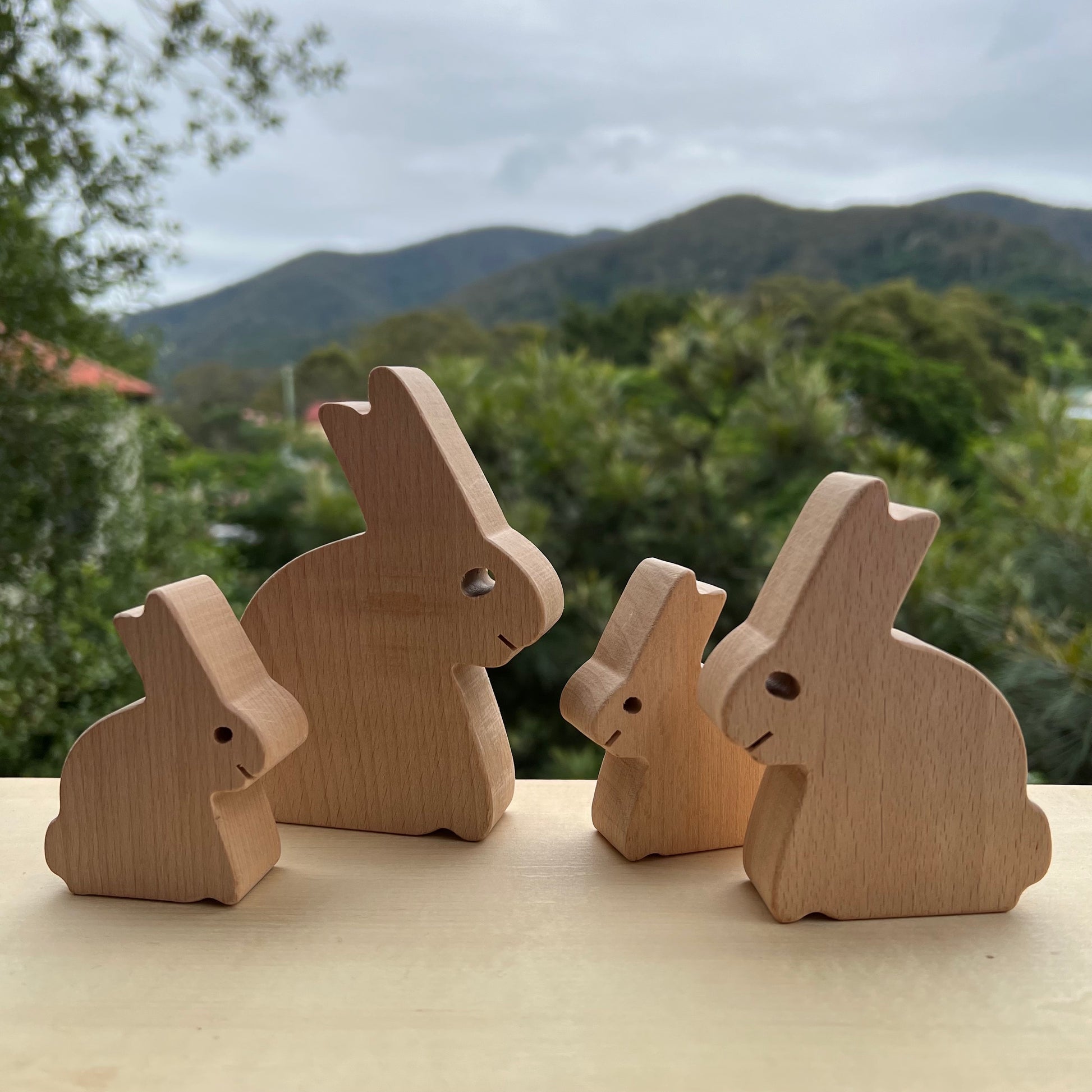 A wooden bunny family makes a great sugar free Easter treat that can be used for years to come in small world play.